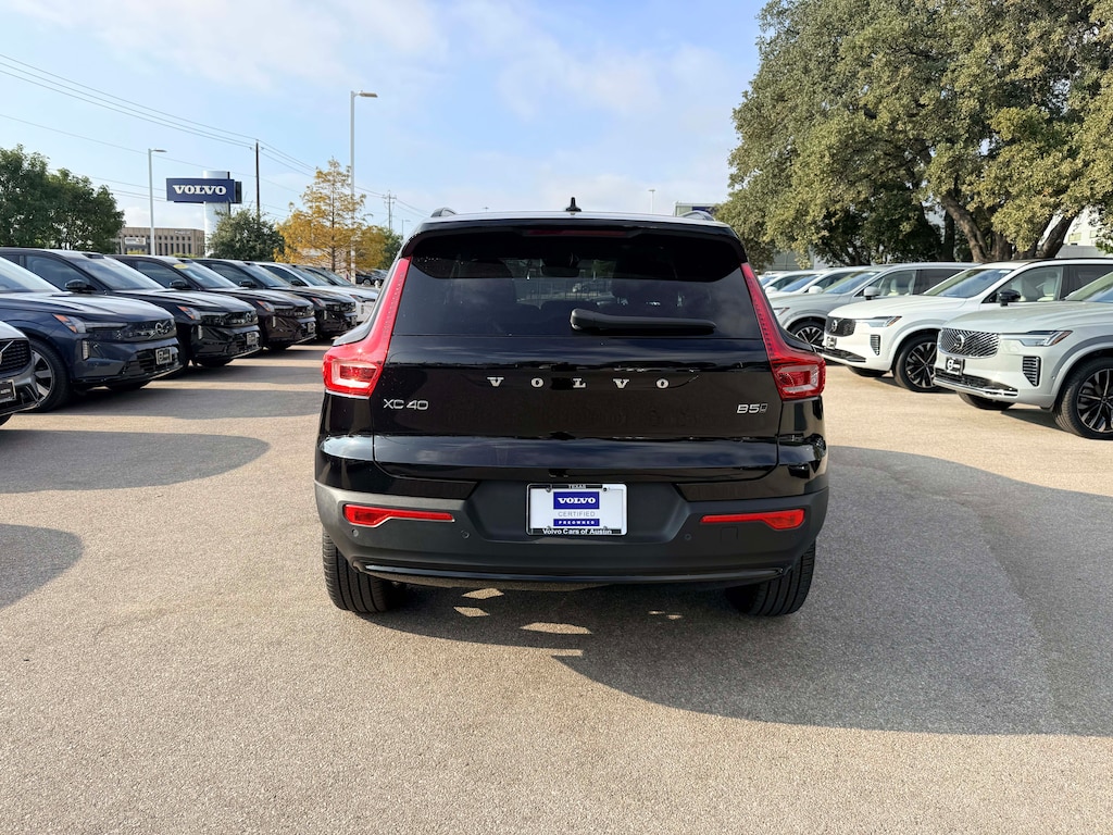 23/30 City/Highway MPG CARFAX One-Owner Onyx Black Metallic 2025 Volvo XC40 B5 Plus Dark Theme AWD 2.0L Turbo I4 247hp 258ft. lbs. 12 Driver Seat Power Adjustments, 12 Passenger Seat Power Adjustments, 12.3 In. Instrument Cluster Screen Size, 12V Cargo Area Power Outlet(s), 12V Front Power Outlet(s), 2 Driver Memorized Settings, 2 Front Headrests, 2.0L Turbo I4 247hp 258ft. lbs., 250 Watts, 3 Rear Headrests, 3-point Front Seatbelts, 3-point Rear Seatbelts, 4 One-touch Windows, 4-way Power Lumbar Driver Seat Power Adjustments, 4-way Power Lumbar Passenger Seat Power Adjustments, 4-wheel ABS, 5 Wheel Spokes, 60-40 Split Bench Rear Seat Type, 8 Total Speakers, 8-Speed Shiftable Automatic, 800 CCA Battery Rating, 9 In. Infotainment Screen Size, Accessory Hook Storage, Acoustic Windshield Laminated Glass, Active Charcoal Air Filtration, AGM Battery, Alarm Anti-theft System, Alloy Shift Knob Trim, Alloy Steering Wheel Trim, Aluminum Dash Trim, Aluminum Door Sill Trim, Aluminum Door Trim, Aluminum Interior Accents, Ambient Lighting, Android Auto Smartphone Integration, Android Automotive Infotainment, Anti-tow Sensor Anti-theft System, Anti-trapping Moonroof / Sunroof, App Marketplace Integration Connected In-car Apps, Apple CarPlay Smartphone Integration, Approach Lamps Exterior Entry Lights, Audible Warning Pre-collision Warning System, Audio Steering Wheel Mounted Controls, Auto Delay Off Headlights, Auto High Beam Dimmer Headlights, Auto Off Electronic Parking Brake, Auto On/off Headlights, Auto Start/stop, Auto-dimming Rearview Mirror, Auto-dimming Side Mirrors, Auto-locking Power Door Locks, Auto-off Rear Fog Lights, Automatic Climate Control Front Air Conditioning, Automatic Hazard Warning Lights, AWD, Battery Saver, Bin Storage, Black Fender Lip Moldings, Black Grille Color, Black Mirror Color, Black Rear Bumper Color, Black Rocker Panel Color, Black Roof Rails, Black Window Trim, Bluetooth Auxiliary Audio Input, Bluetooth Wireless Data Link, Body-color Door Handle Color, Body-color Front Bumper Color, Body-color Rear Spoiler Color, Braking Assist, Bucket Front Seat Type, Capless Fuel Filler System, Cargo Area Light, Carpet Floor Mat Material, Carpet Floor Material, Center Locking Differential, Check Rear Seat Reminder, Child Safety Door Locks, Climate Control Memorized Settings, Clock, Coil Front Spring Type, Coil Rear Spring Type, Compass, Contrast Stitching Upholstery Accents, Coolant Temperature Warning Warnings And Reminders, Cornering Brake Control, Cornering Front Fog Lights, Cruise Control, Cruise Control Steering Wheel Mounted Controls, Customizable Instrument Cluster, Digital Odometer, Diversity Antenna Type, Door Courtesy Lights, Door Pockets Storage, Door Unlock Impact Sensor, Drive Mode Selector, Driver Attention Alert System, Driver Knee Airbags, Driver Seat Memorized Settings, Dual Front Air Conditioning Zones, Dual Front Airbags, Dual Front Impact Absorbing Seats, Dual Illuminating Vanity Mirrors, Electronic Brakeforce Distribution, Emergency Braking Preparation, External Temperature Display, Faux Suede Upholstery, Fixed Liftgate Window, Flat Rear Seat Folding, FM Radio, Foldable Rear Headrests, Footwell Lights, Front Assist Handle, Front Automatic Emergency Braking, Front Console With Armrest And Storage Center Console, Front Crumple Zones, Front Cupholders, Front Emergency Locking Retractors, Front Floor Mats, Front Overhead Console, Front Parking Sensors, Front Pedestrian Automatic Emergency Braking, Front Reading Lights, Front Seatback Storage, Front Seatbelt Force Limiters, Front Seatbelt Pretensioners, Front Seatbelt Warning Sensor, Front Side Airbags, Front Side Curtain Airbags, Front Skid Plate(s), Front Stabilizer Bar, Front Wireless Charging Station, Gas Front Shock Type, Gas Rear Shock Type, Glass Breakage Sensor Anti-theft System, Google Assistant Connected In-car Apps, Google Assistant Smart Device App Compatibility, Google Built-In Infotainment, Google POIs Connected In-car Apps, Google Search Connected In-car Apps, Grocery Bag Holder Storage, Hard Drive, Head-on Collision Avoidance Evasive Steering Assist, Heated Driver Seat, Heated Passenger Seat, Heated Side Mirrors, Height Driver Seat Power Adjustments, Height Passenger Seat Power Adjustments, Hidden Exhaust, Hill Descent Off-road Driving Assist, Hill Holder Control, Homelink - Garage Door Opener Universal Remote Transmitter, Hotspot Compatible Wi-Fi, Humidity/dewpoint Sensors, IHeartRadio Internet Radio App, Illuminated Cupholders, In Dash Rearview Monitor, In Floor Storage, In Seat Cushion Storage, Independent Front Suspension Classification, Independent Rear Suspension Classification, Inside Spare Tire Mount Location, Integrated Front Headrests, Integrated Turn Signals Side Mirrors, Interior Motion Sensor Anti-theft System, Ionizing Air Filtration, IPod/iPhone Auxiliary Audio Input, Lamp Failure Warnings And Reminders, Lane Deviation Sensors, Lane Keeping Assist, Lane Keeping Assist With Blind Spot Integration, LATCH System Child Seat Anchors, Leatherette Center Console Trim, Leatherette Dash Trim, LED Daytime Running Lights, LED Front Fog Lights, LED Headlights, LED Taillights, Liftgate Memorized Settings, Liftgate Rear Trunk/liftgate, Lock Operation Smart Device App Function, Lockout Button Power Windows, Low Fuel Level Warnings And Reminders, Low Oil Pressure Warnings And Reminders, Low Washer Fluid Warnings And Reminders, Lower Control Arms Front Suspension Type, MacPherson Front Struts, Maintenance Due Warnings And Reminders, Maintenance Scheduling Smart Device App Function, Maintenance Status Smart Device App Function, Maintenance-free Battery, Mast Antenna Type, Memory Card Navigation System, Microfiber Steering Wheel Trim, Mild Hybrid System, Moonroof / Sunroof Wind Deflector, MPG Fuel Economy Display, Multi-function Display, Multi-function Steering Wheel Mounted Controls, Multi-link Rear Suspension Type, Occupant Sensing Passenger Airbag Deactivation, On Demand 4WD Type, One-touch Open/close